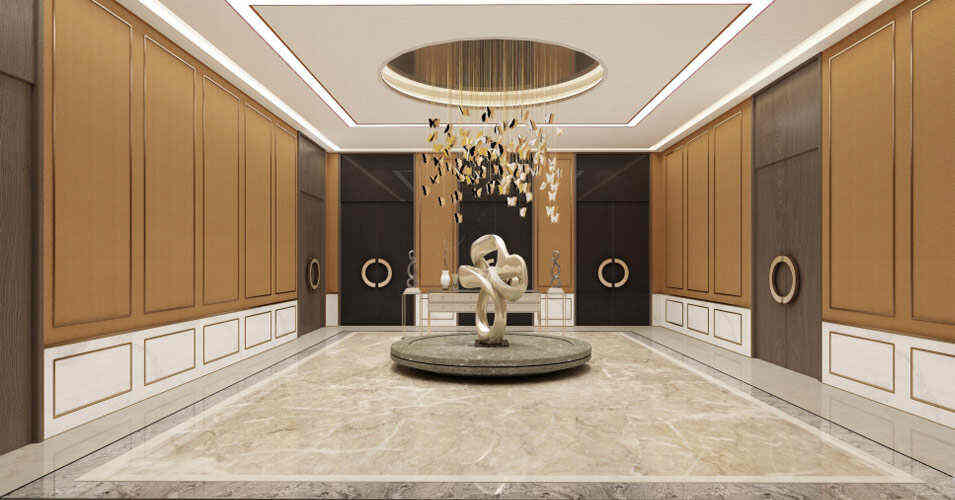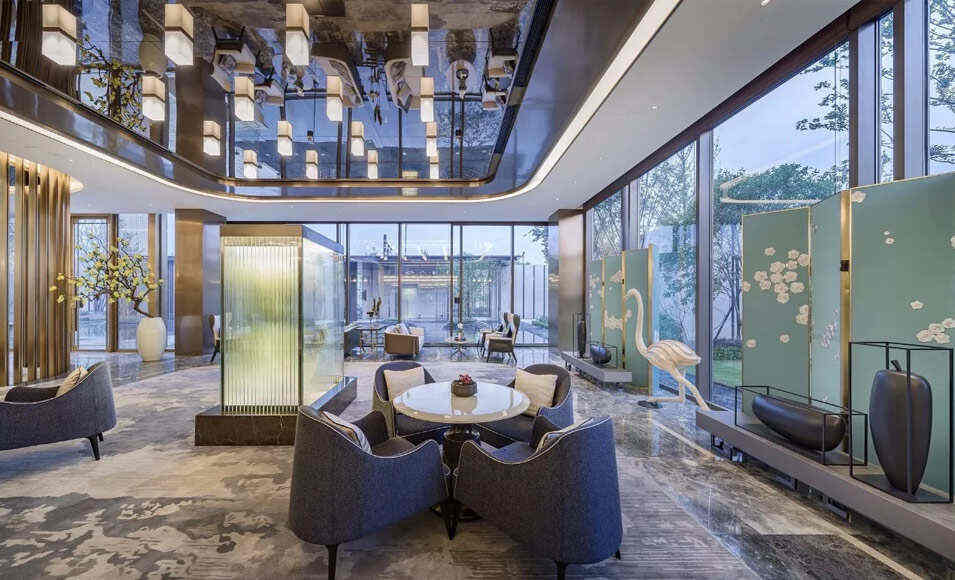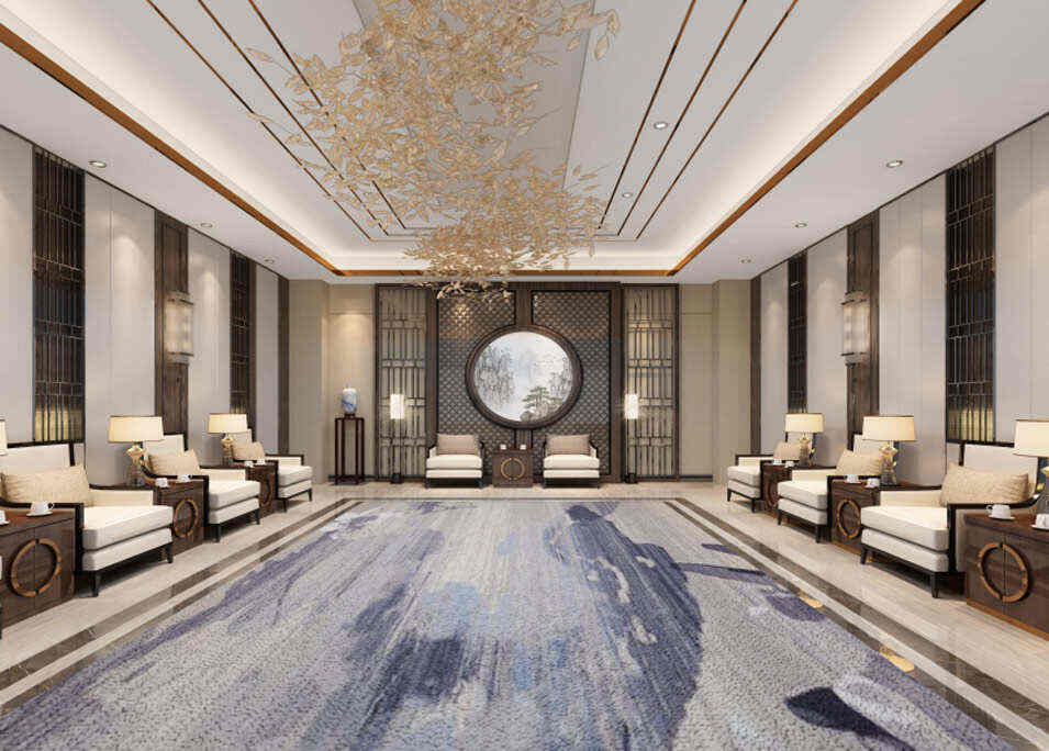設計介紹:地面充滿藝術氣息的花瓣圖案,中性色木材的座椅,斑駁不均的紋理前臺桌,以及有紋理的墻壁,幾種元素相融合,給空間帶來了意想不到的美感。休息室上空的方塊燈飾,紫色的座椅、雕塑藝術擺件,清新的屏風構成了一個浪漫多姿的休閑洽談區,老板辦公室和貴賓室看起來典雅,莊重,采用木色的、灰色為主色,皮質的木色沙發、配上裝滿藝術品的櫥柜,類似古代的屏風,沉斂深厚、文化品位濃郁,打造富有激進韻味的空間。