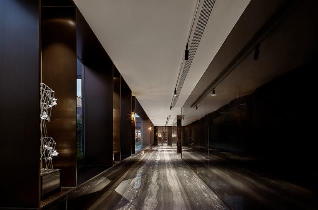如某公司辦公室裝修:前臺大面積使用的勞倫金,奠定了整個空間的基調,在沉穩克制的質感中,隱透出金的尊貴;經過特殊處理的不銹鋼面的接待臺,讓空間理性而內斂;浪花石則打破了這種寧靜,增添了幾許動感。設置了一個“口”形的環繞動線,以電梯間和接待區域為中線,東西分別分布董事長辦公接待區域和員工辦公與功能區域,在空間上保障了組織溝通以及業務功能的滿足。辦公空間的軟裝設計是現代與復古、樸質與精巧、藝術與自然之間的對話與順應。橙色、木色、淺灰色作為家具的主色調,以溫暖的氣息中和硬裝的冷峻,帶來空間的溫度。