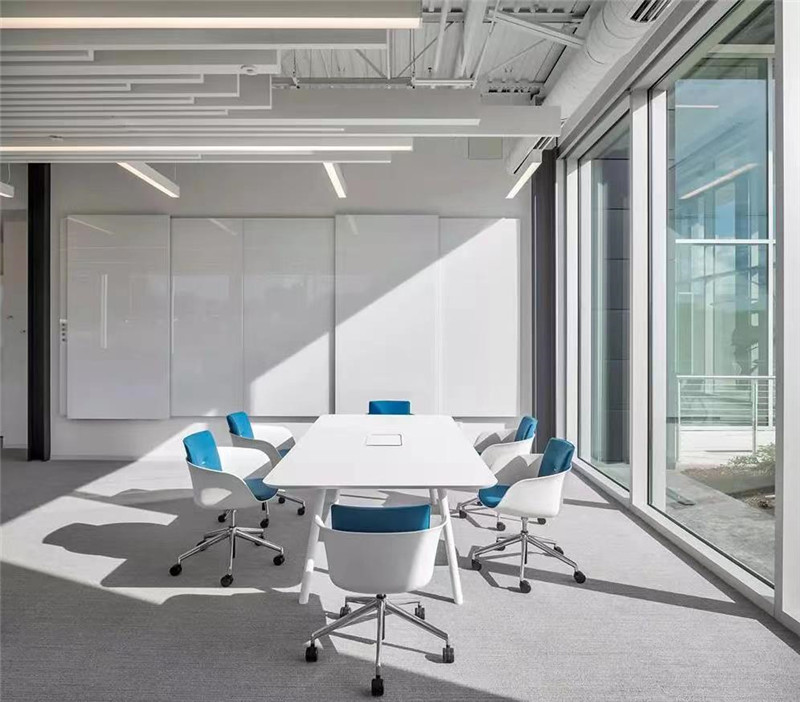 3、最后洽談室需要有一定的私密性,有時(shí)有客戶在洽談室會(huì)議時(shí),如果私密性不好也會(huì)讓人產(chǎn)生戒備的心理。所以洽談室如果使用了玻璃隔斷可以玻璃貼膜,或者墻面使用一半石膏板一半玻璃隔斷結(jié)合的形式來(lái)增加空間私密性。洽談室的空間色彩也可以使用不同于會(huì)議室的的活躍、明亮的多種顏色讓空間更加放松。