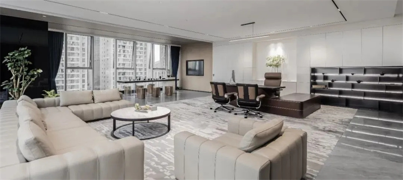 作為總經(jīng)理辦公室,除了考慮使用面積稍大以外,為了擴(kuò)大視覺(jué)空間,一般會(huì)采用矮一些的辦公家具設(shè)計(jì),因?yàn)檫^(guò)于擁擠的環(huán)境會(huì)束縛人的思維,帶來(lái)心理焦慮等問(wèn)題。總經(jīng)理是公司決策層的資深成員,為他創(chuàng)造良好的辦公環(huán)境極為重要。
